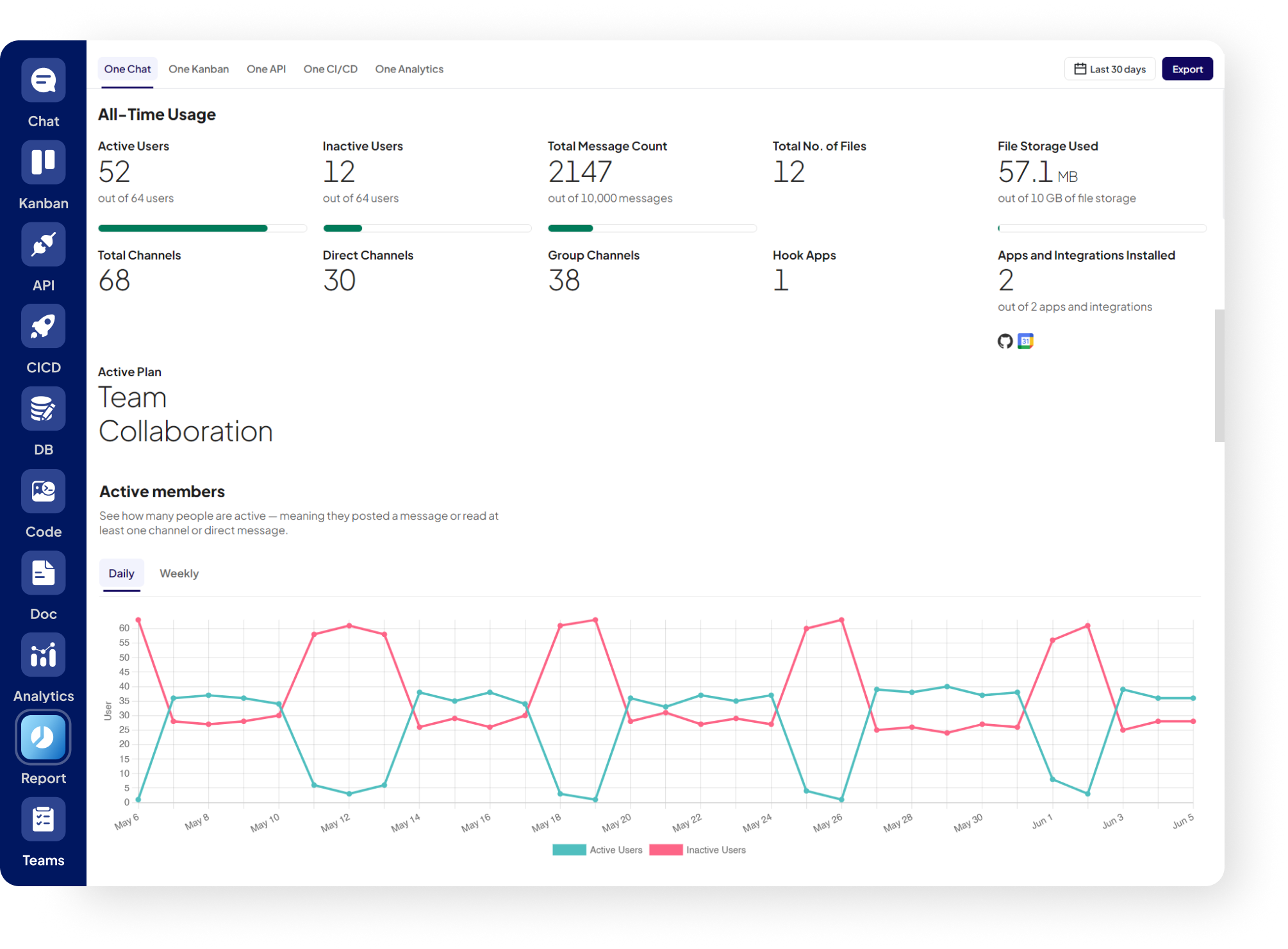 Gain insights into the usage and performance of your installed and hook apps with one reports